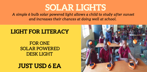Through the Bourke Family Foundation and Meeting Needs, we have been able to distribute over 3 000 solar study lights to rural students in 17 schools. Electrification in the rural areas is unheard of and many youngsters walk very long distances to and from school daily, arriving home in the dark. These solar study lights enable them to do their homework and studies in the evenings. We will be distributing a further 2000 lights in the coming months.